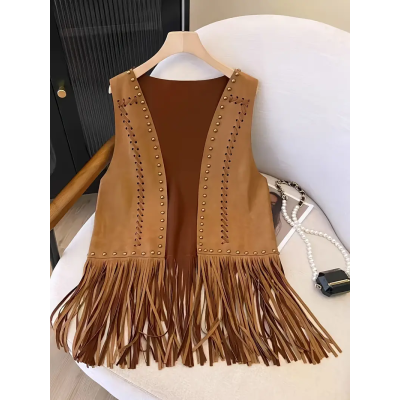 Ladies' elegant sleeveless vest - lightweight layered design, machine washable with non stick texture, suitable for parties, formal occasions, and daily wear - brown